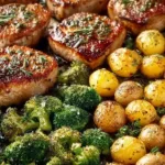 Sheet Pan Pork Chops with Potatoes and Broccoli