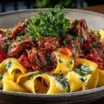 Beef Short Rib Ragu is a comforting, mouth-watering dish perfect for family gatherings or cozy dinners. The tender short ribs simmer in a rich sauce made with red wine and tomatoes, giving it a deep, satisfying flavor. This recipe is straightforward and allows you to enjoy a delicious homemade meal without too much fuss. It’s great served over pasta, making it a hearty and filling choice for any night of the week.