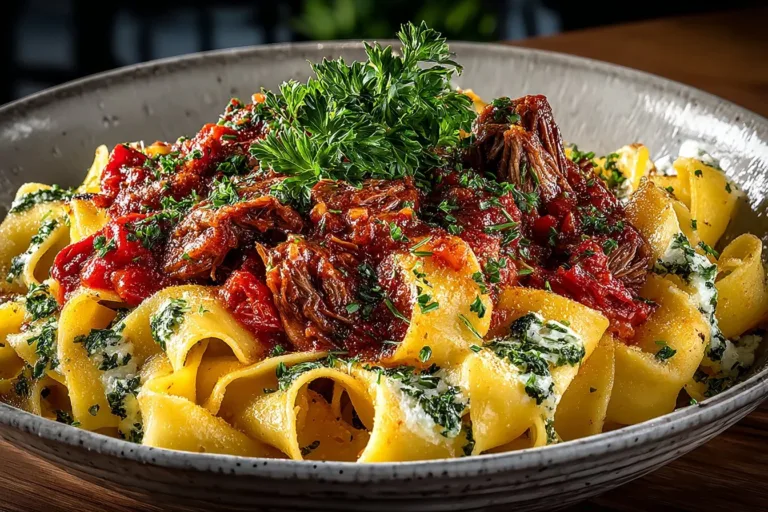 You can store leftover Beef Short Rib Ragu in an airtight container in the fridge for up to 3 days. To reheat, gently warm it on the stovetop or in the microwave until heated through. You can also freeze the ragu for up to 3 months. Just make sure to let it cool completely before transferring it to a freezer-safe container.