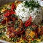 Brazilian Coconut Chicken is a delightful dish that combines the comforting flavors of chicken with the rich creaminess of coconut milk. It’s a quick and easy recipe, perfect for busy weeknights or when you want to impress guests with something unique. The addition of spices and fresh cilantro gives it an aromatic kick, making it a tasty and satisfying meal. Plus, serving it over steamed rice makes it even more filling!
