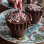 - Step 4: Add Candy Canes – Pour more melted chocolate into each cup and stick in crushed candy canes, then let them dry.
