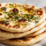 - Cook each naan for 2–3 minutes per side until golden brown and puffy.