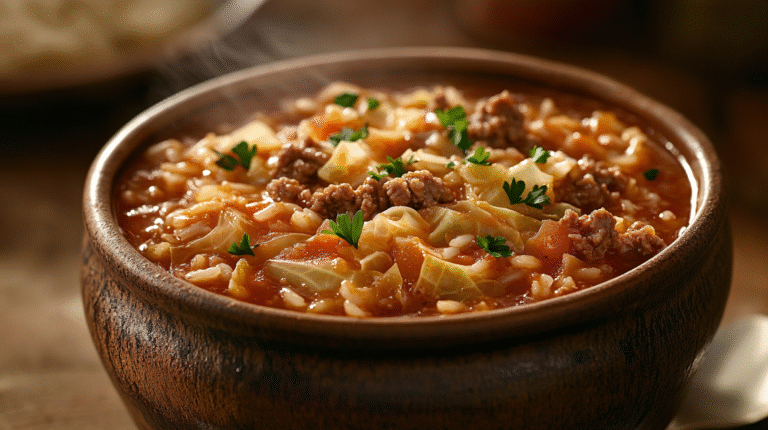 If you love traditional cabbage rolls but don’t want to spend your evening wrapping and rolling, this Cabbage Roll Soup is about to be your new comfort food obsession. It’s everything you adore—rich tomato broth, tender cabbage, hearty beef, and warm spices—all simmered together in one pot of soul-soothing goodness. It’s a weeknight win that tastes like a warm hug from grandma’s kitchen. Trust me, this one’s a game-changer.