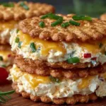 Creamy Cheddar Herb Ritz Cracker Sandwiches are a delightful and easy appetizer or snack. They combine the rich flavors of cream cheese and cheddar with the freshness of herbs and vegetables. These bite-sized sandwiches are perfect for parties, gatherings, or even for a quick snack at home. Their creamy filling and crispy crackers create a satisfying texture, making them a crowd-pleaser for both kids and adults.