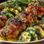 - Bake for 25-30 minutes until the chicken reaches an internal temperature of 165°F and the zucchini is tender.
