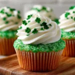 - Pipe the frosting onto the cooled cupcakes and decorate with green sanding sugar or shamrock sprinkles as desired.