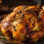 Sprinkle the thyme, rosemary, salt, and pepper over the chicken. Channel your inner chef as you sprinkle! You’re creating an unforgettable taste experience.