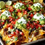 Serve these nachos hot and fresh from the oven. Offer a variety of toppings on the side, such as extra guacamole, sour cream, or even salsa, for guests to customize their plates. They make a great snack for game day, movie night, or any casual gathering.