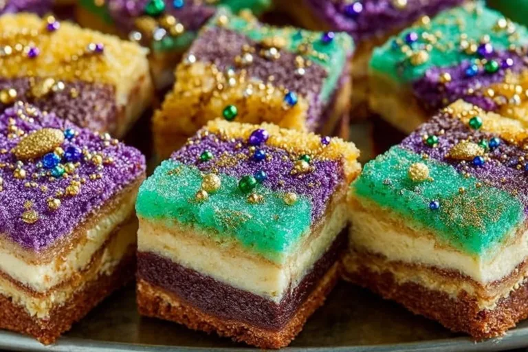 King Cake Cheesecake Bars are a fun and delicious twist on the traditional King Cake. This recipe combines the creamy texture of cheesecake with the flavors of cinnamon rolls, making it perfect for celebrations like Mardi Gras. The colorful sprinkles add a festive touch, making it not only tasty but also visually appealing. Whether you are hosting a party or just want to treat yourself, these bars are sure to impress.