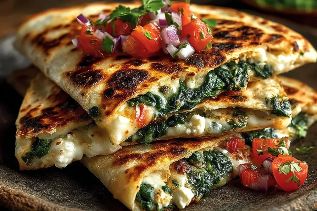 tips to make Mediterranean Quesadillas with Spinach, Feta, Mozzarella, and Red Onion