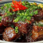 You can serve Okinawa Soy Sauce Pork with steamed rice, making sure to spoon some of the sauce over the top. Adding a side of blanched vegetables, like bok choy or green beans, can also balance the richness of the pork. Garnish with sliced green onions for an extra pop of flavor and color.