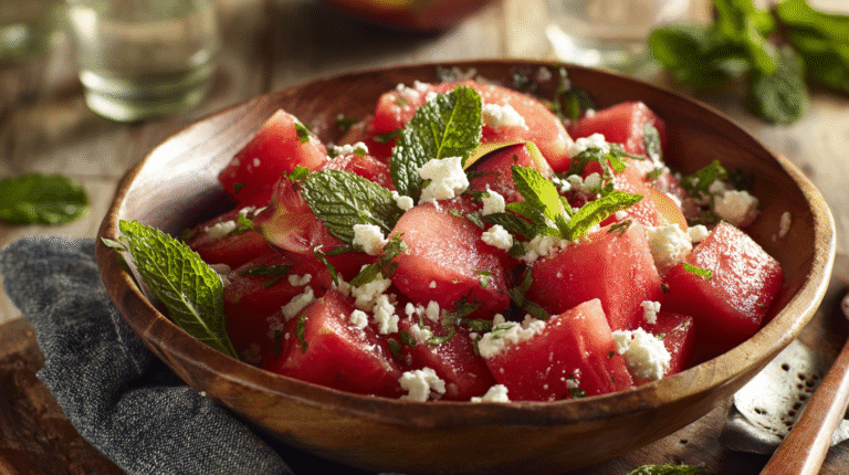 This Peach Watermelon Salad is what summer dreams are made of. Light, juicy, and bursting with color, it’s a celebration of sweet peaches and crisp watermelon, all tied together with fresh mint, tangy lime, and creamy feta. Whether you’re into Watermelon Salad Recipes or just scrolling for Fresh Salad Recipes, this one’s going to be a total favorite.