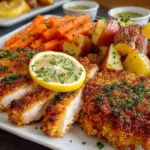 - Garnish the schnitzels with fresh parsley or dill and serve with lemon wedges.