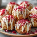 - For an extra touch, drizzle melted white chocolate and crushed freeze-dried raspberries over the balls after chilling.