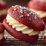 Serve Red Velvet Whoopie Pies on a nice plate, and consider adding a dusting of powdered sugar on top for a fancy touch. They are great for parties, gatherings, or a cozy afternoon treat with coffee or tea.