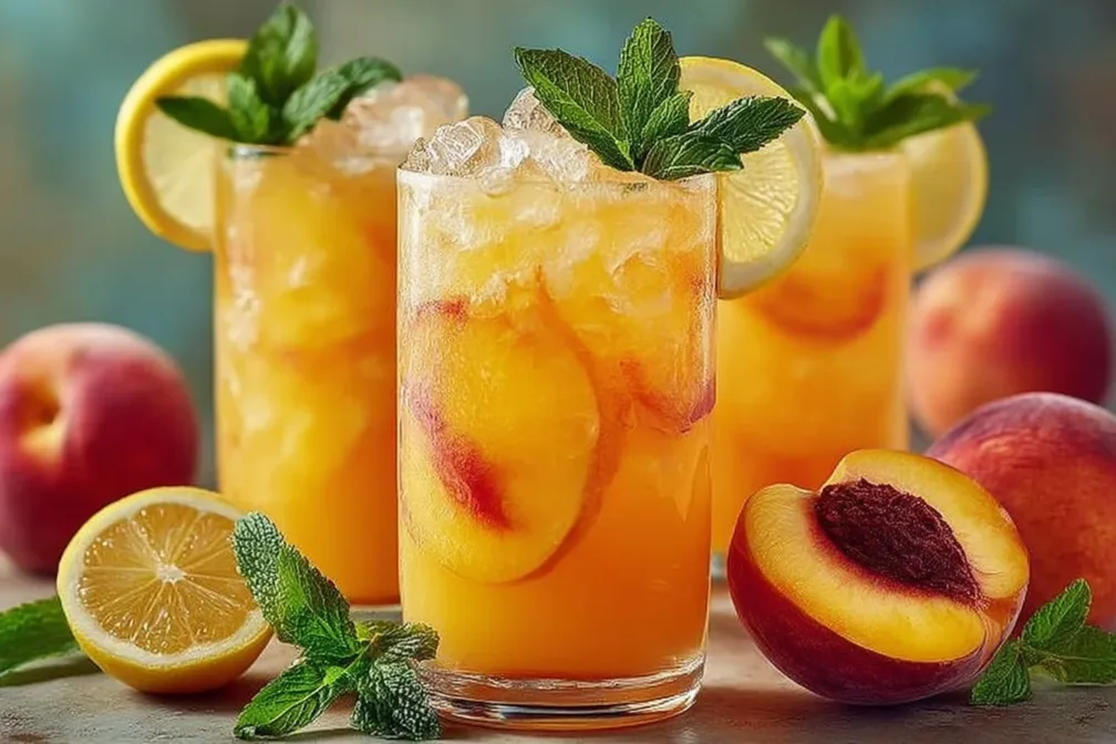 - Chill & Serve: Refrigerate the peach lemonade for at least 30 minutes to thoroughly chill. Serve over plenty of ice, garnished with fresh peach slices, lemon wheels, and mint sprigs.