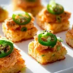 Now comes the fun part! Top each crispy rice square with a generous dollop of spicy tuna, a slice of creamy avocado, and a jalapeño slice for that colorful presentation. Serve immediately, and watch everyone dive in!