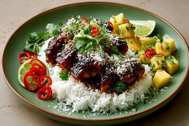 Sticky Pineapple Chicken with Coconut Rice is a delightful dish that combines sweet and savory flavors. The chicken becomes sticky and flavorful, perfectly complemented by the creamy coconut rice. It’s a great meal for family dinners or for impressing guests. Plus, it’s colorful and fresh, making it as pleasing to the eyes as it is to the taste buds!