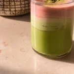 Grab a tall glass and fill it with ice. Pour the prepared matcha over the ice, followed by the fresh strawberry puree. Top it off with the creamy mixture you made. Swirl it gently to achieve a beautiful marbled effect.