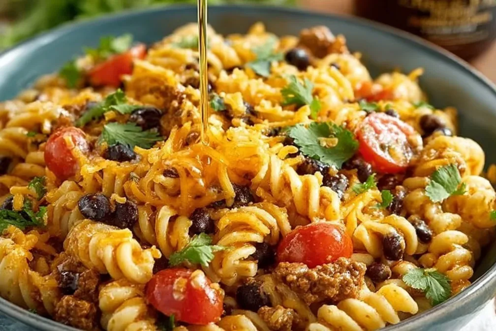 Taco Pasta Salad is best served chilled, making it a great dish for warm weather or potlucks. For an appealing presentation, consider serving it in a large, colorful bowl, or create individual portions in mason jars for a fun, portable option.