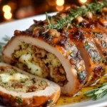 Slice the roulade into thick spirals for serving. It pairs well with traditional sides like mashed potatoes, green beans, or cranberry sauce. You can drizzle some of the pan juices over the slices for extra flavor.