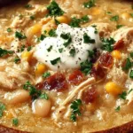 You can serve White Chicken Chili in bowls. A sprinkle of chopped cilantro on top adds a fresh touch. It’s great with toppings like shredded cheese, sour cream, or avocado slices. You can also pair it with tortilla chips or cornbread for a complete meal.